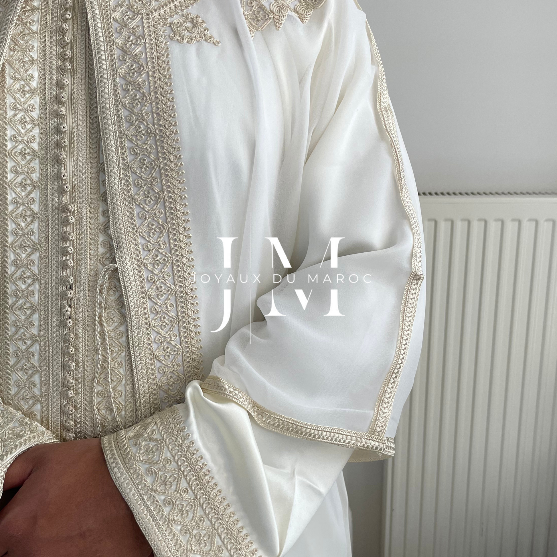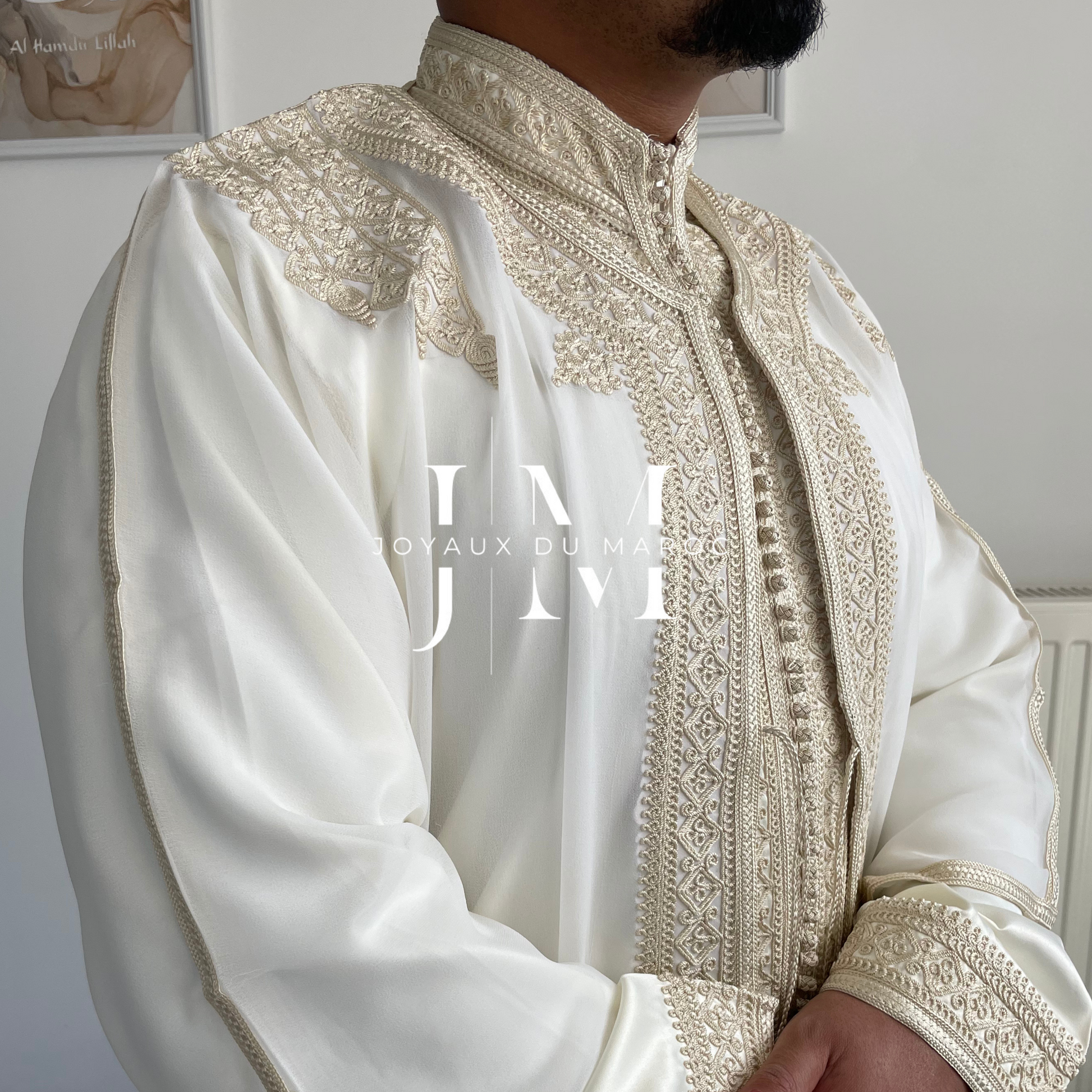 Avec sa teinte beige douce et apaisante, le Jabador Issa allie tradition et modernité. Ses broderies délicates et sa coupe épurée mettent en valeur le savoir-faire marocain. Une tenue élégante pour les amateurs de style discret et raffiné.